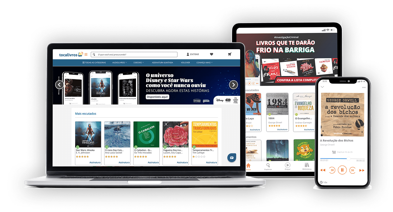Com audiolivros narrados por grandes vozes e eBooks para ler onde quiser, a Tocalivros leva cultura e conhecimento para o seu dia a dia, de forma prática e acessível.